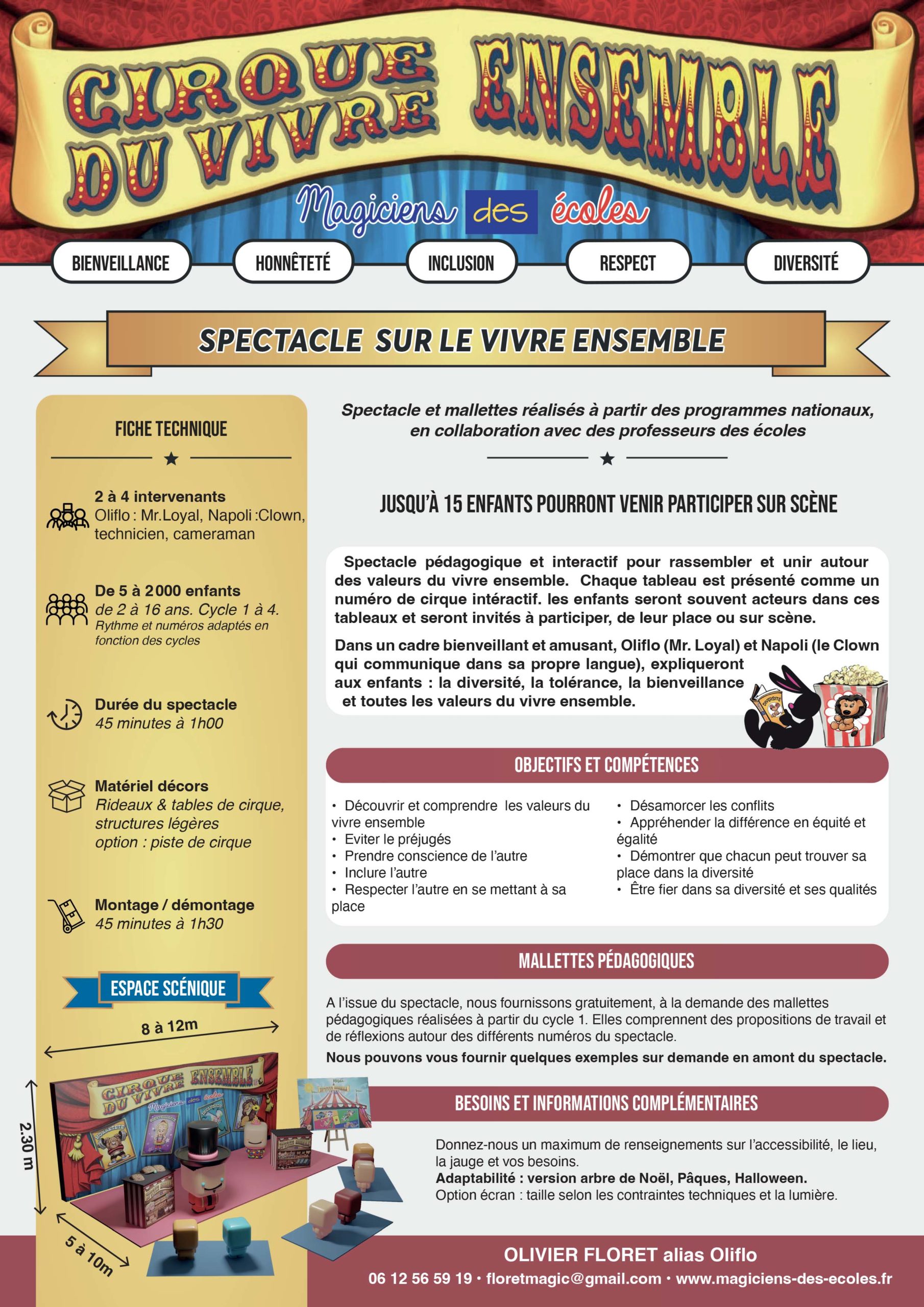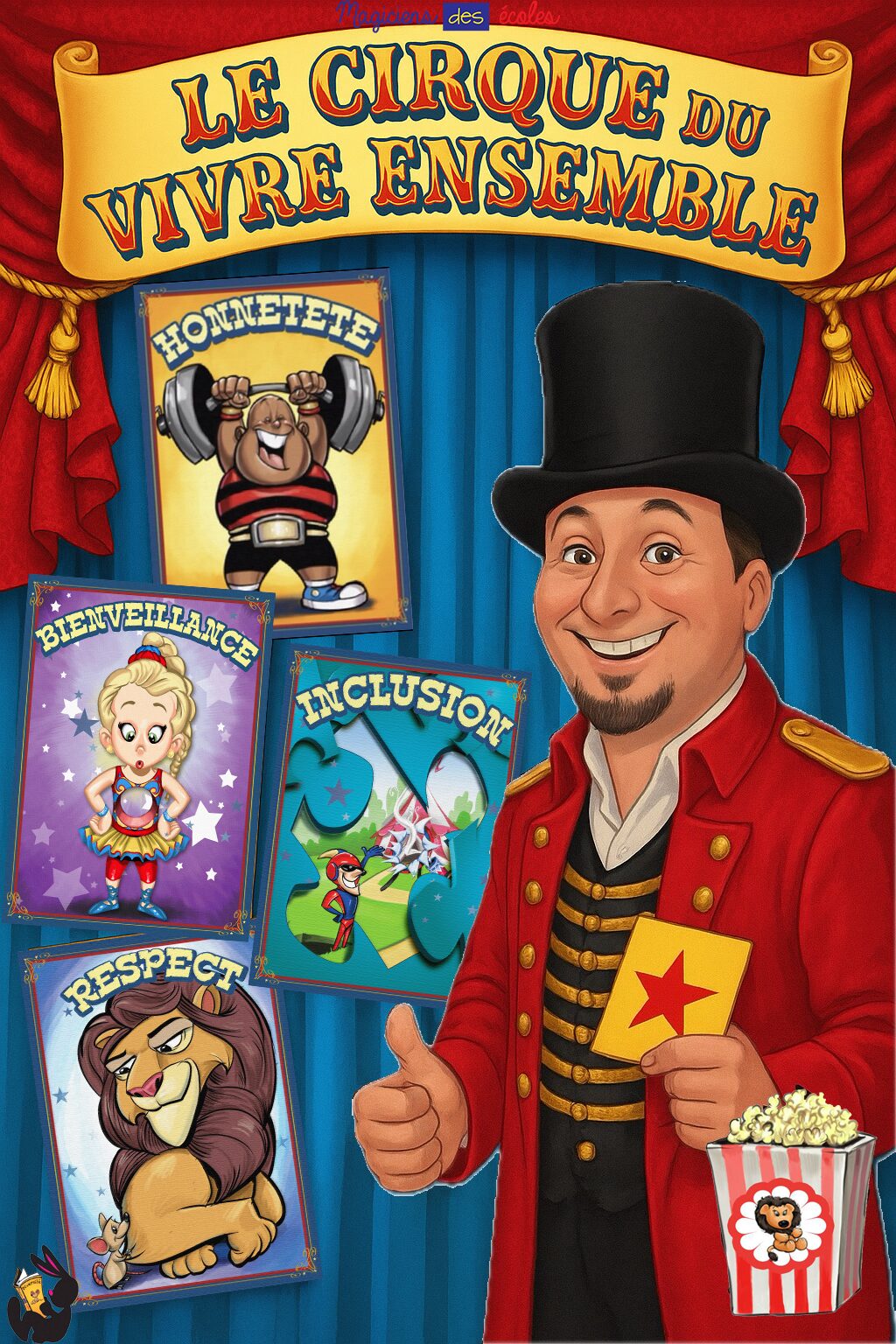 C’est un spectacle interactif qui transporte les enfants sous un chapiteau imaginaire, où la magie du cirque devient le prétexte à une exploration des valeurs essentielles du vivre ensemble comme le respect, la bienveillance, l’empathie, la tolérance et  la coopération.